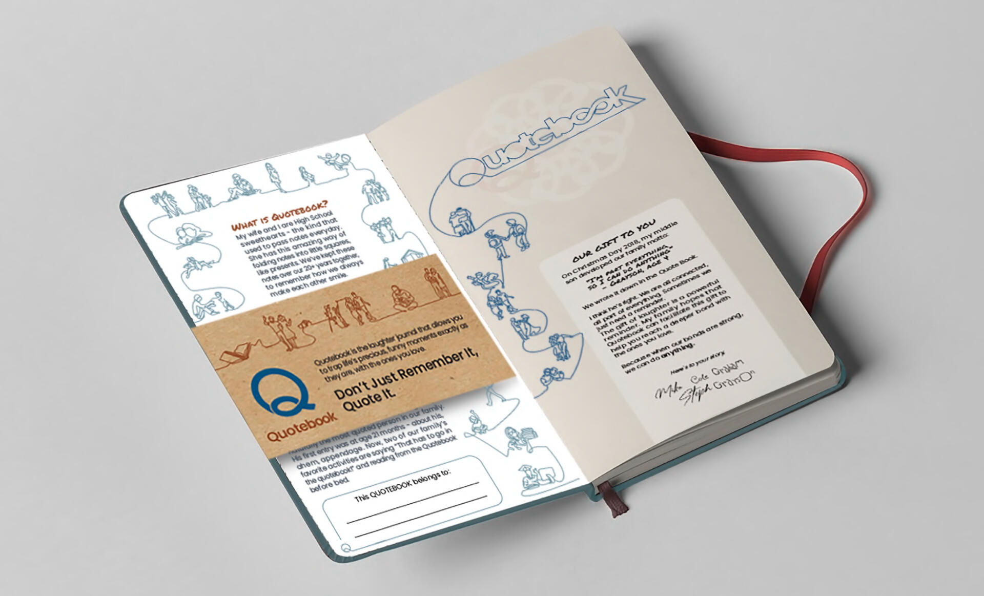 We built our first Quotebook in 2006, but we didn’t know it. My wife and I just wanted to capture all of the funny things we said to each other in our relationship. We’ve kept it all these years, and since adding three young boys to the mix, Quotebook has taken on a life of it’s own. We wanted other families to experience the joy laughter and silliness that we get from the Quotebook.For Couples: My wife and I write down all the stuff that we say to make each other laugh.**For Families: **Our kids say the darndest things! Our 4-year-old is the most quoted person in the book!For Friends: Have a college student on a new adventure making new friends? College kids use Quotebook to capture a keepsake snapshot of all the hilarity that doesn't make Instagram.For Nanas and their grandkids: Give the gift of laughter, and help grandparents capture amazing memories.